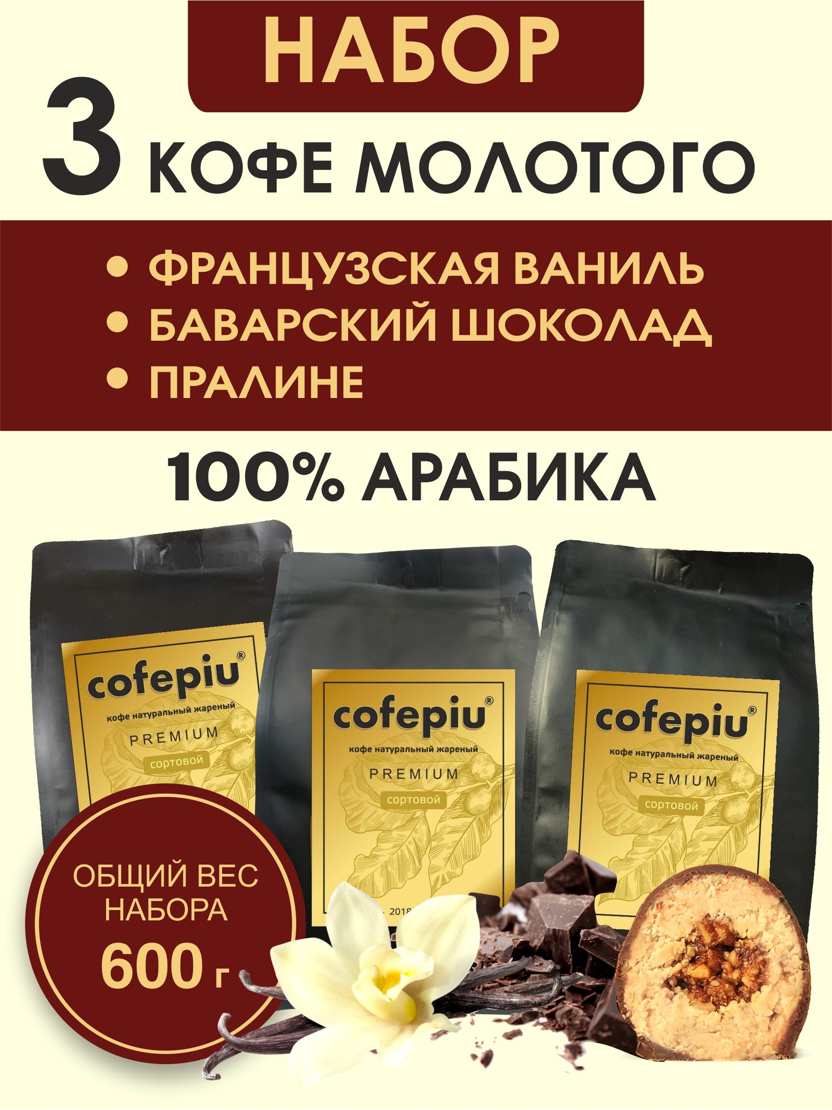 Набор кофе молотого 3 шт х 200 гр. Французская Ваниль, Баварский Шоколад, Пралине, арабика 100%